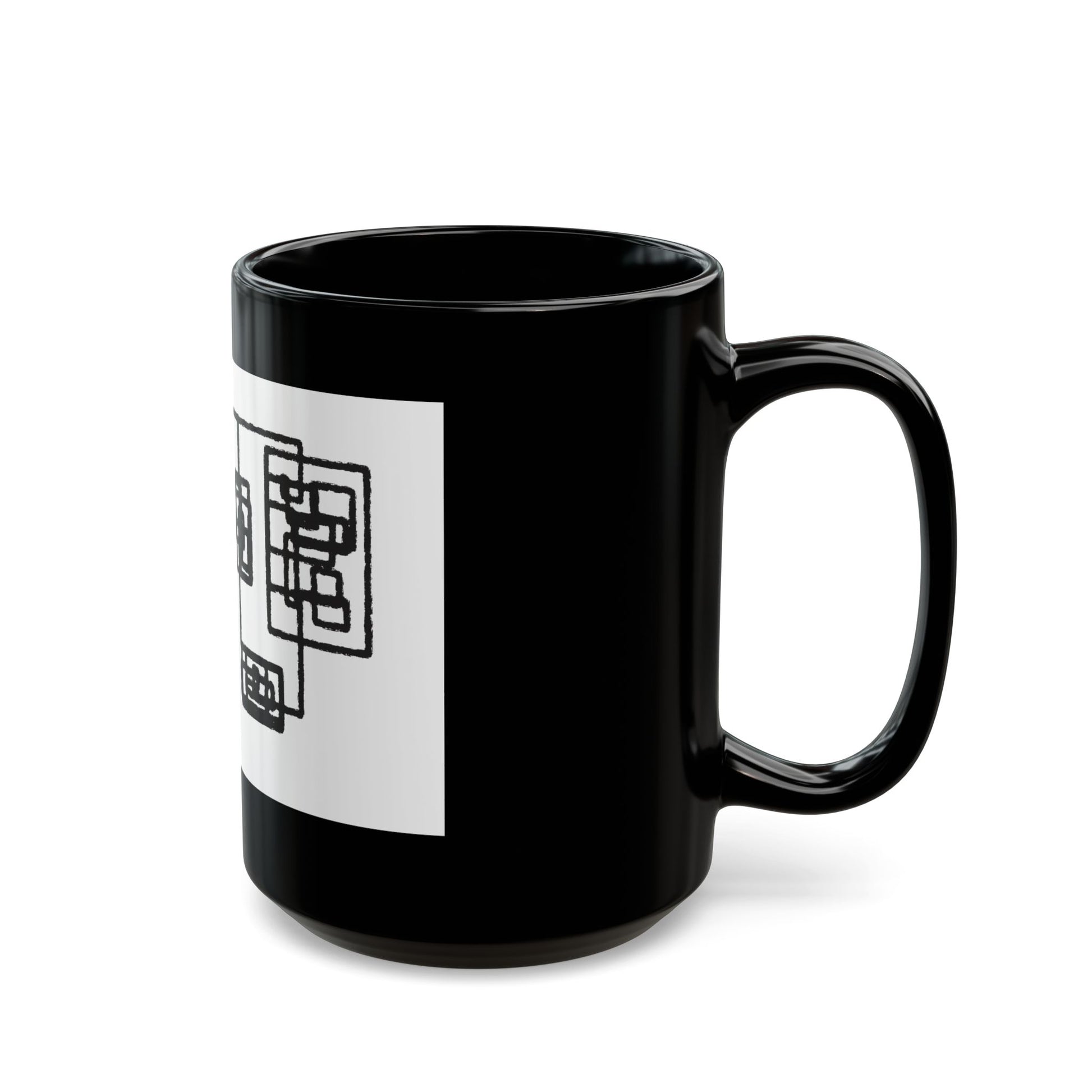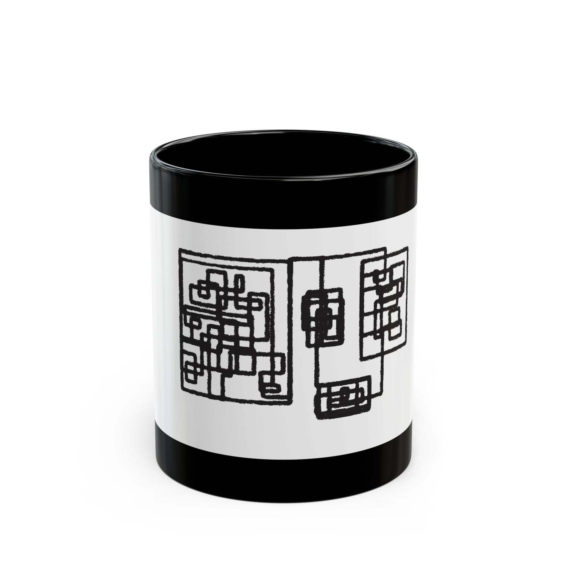 Abstract Geometric Black Ceramic Mug — Minimalist Line Art Cup (11oz, 15oz)